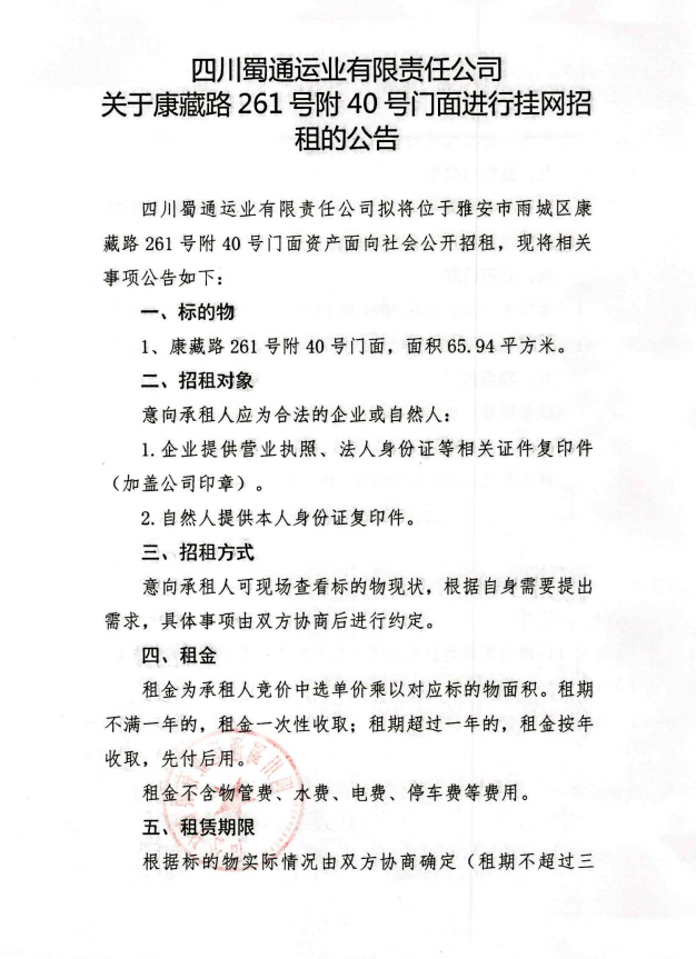 ËÄ´¨Êñͨß\˜I(y¨¨)ÓÐÏÞØŸ(z¨¦)Èι«Ë¾ êP(gu¨¡n)ÓÚ¿µ²ØÂ·261Ì–¸½40Ì–éTÃæßM(j¨¬n)ÐÐ’ì¾W(w¨£ng)ÕÐ×âµÄ¹«¸æ
