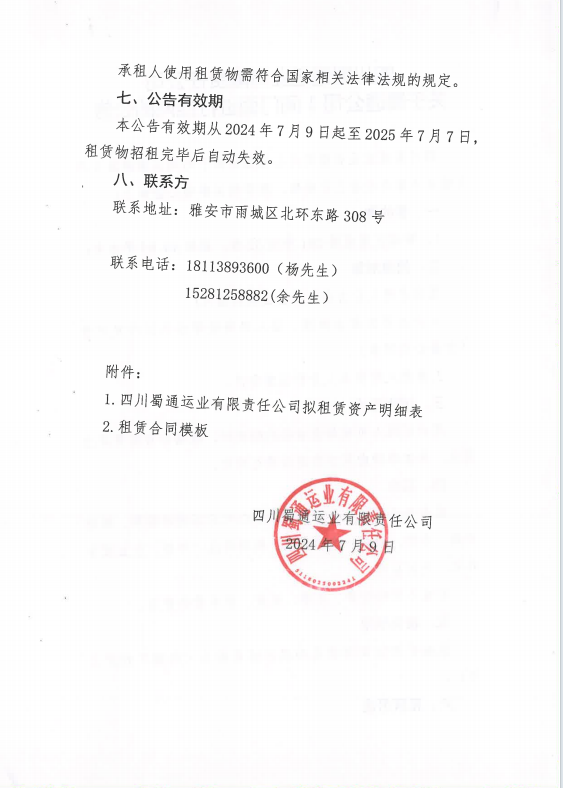 四川蜀通運業(yè)有限責任公司關于蜀通公司1間門面進行掛網的公告附件