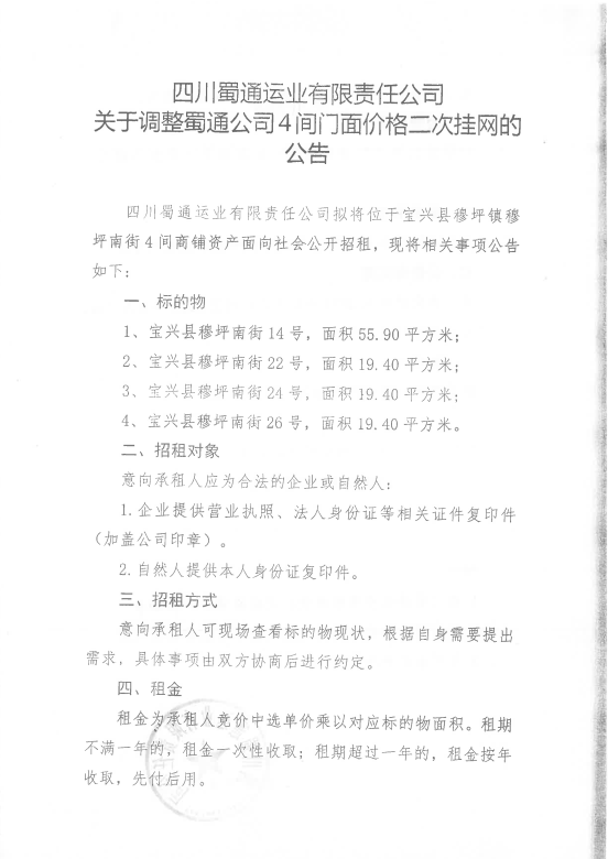 ËÄ´¨Êñͨß\˜I(y¨¨)ÓÐÏÞØŸ(z¨¦)Èι«Ë¾êP(gu¨¡n)ÓÚÕ{(di¨¤o)ÕûÊñͨ¹«Ë¾4égéTÃæƒr¸ñ¶þ´Î’ì¾W(w¨£ng)µÄ¹«¸æ¸½¼þ