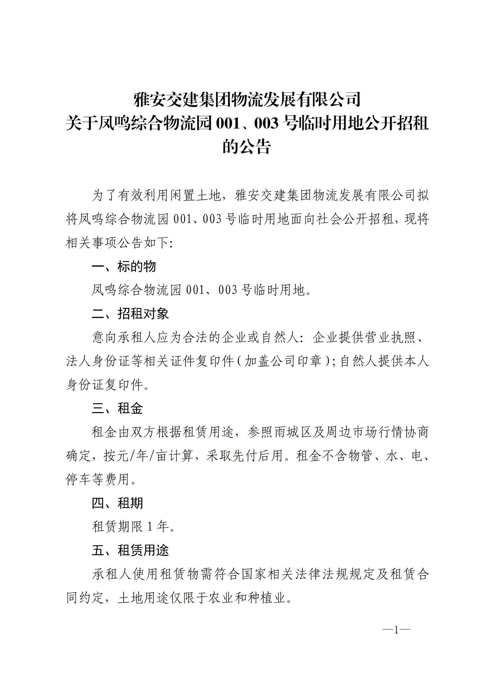 ÑŰ²½»½¨¼¯ˆFÎïÁ÷°l(f¨¡)Õ¹ÓÐÏÞ¹«Ë¾ êP(gu¨¡n)ÓÚøPøQ¾CºÏÎïÁ÷ˆ@001¡¢003Ì–ÅR•rÓõع«é_ÕÐ×âµÄ¹«¸æ