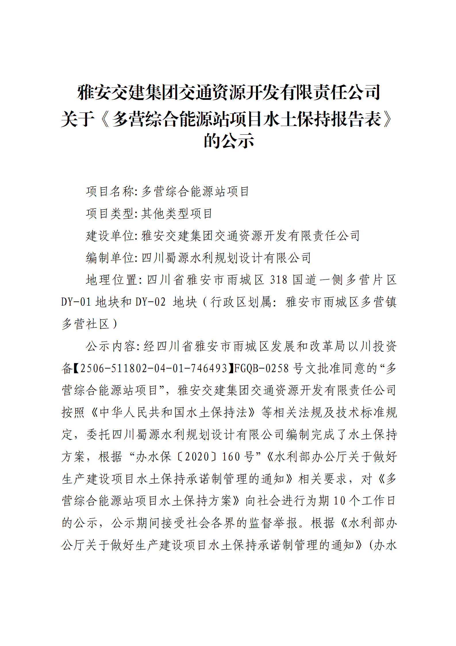 ÑŰ²½»½¨¼¯ˆF½»Í¨ÙYÔ´é_°l(f¨¡)ÓÐÏÞØŸ(z¨¦)Èι«Ë¾ êP(gu¨¡n)ÓÚ¡¶¶à I¾CºÏÄÜÔ´Õ¾í—ĿˮÍÁ±£³Öˆó¸æ±í¡·µÄ¹«Ê¾