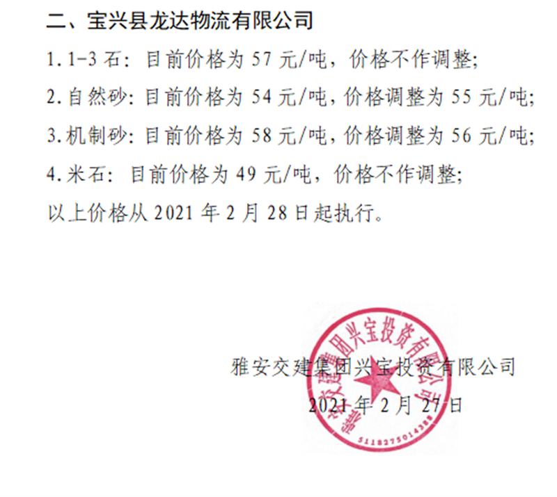 ÑŰ²½»½¨¼¯ˆFµ¤Ê¯¹«Ë¾Ê¯»Ò?gu¨©)r³ÉÆ·¹ÇÁÏ’ìÅÆƒr£¨2021.2.25£©