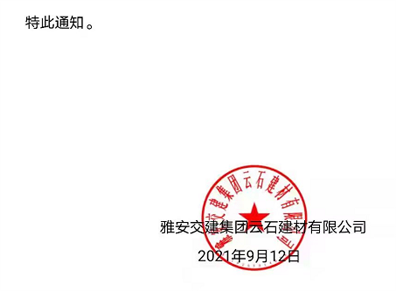 ÑŰ²½»½¨¼¯ˆF(tu¨¢n)ÔÆÊ¯¹«Ë¾êP(gu¨¡n)ÓÚÕ{(di¨¤o)Õû³ÉÆ·ÁÏäNÊÛƒr¸ñµÄ֪ͨ£¨2021.9.13£©