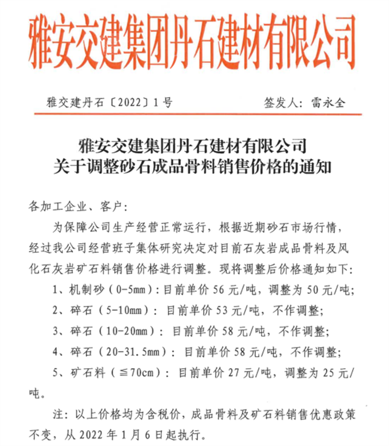 ÑŰ²½»½¨¼¯ˆFµ¤Ê¯¹«Ë¾êP(gu¨¡n)ÓÚÕ{(di¨¤o)Õûɰʯ³ÉÆ·¹ÇÁÏäNÊÛƒr¸ñµÄ֪ͨ£¨2022.1.5£©