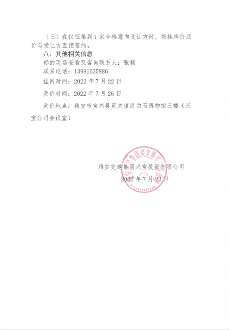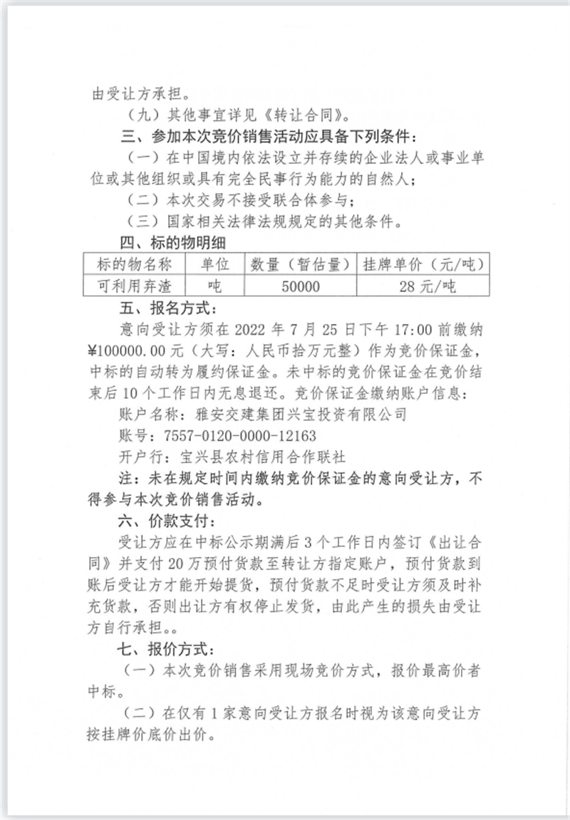 興寶公司寶興縣靈關(guān)鎮(zhèn)代碑寺土地整理項目10萬噸可利用棄渣競價銷售掛網(wǎng)公告掛網(wǎng)公告7.22(5萬噸)