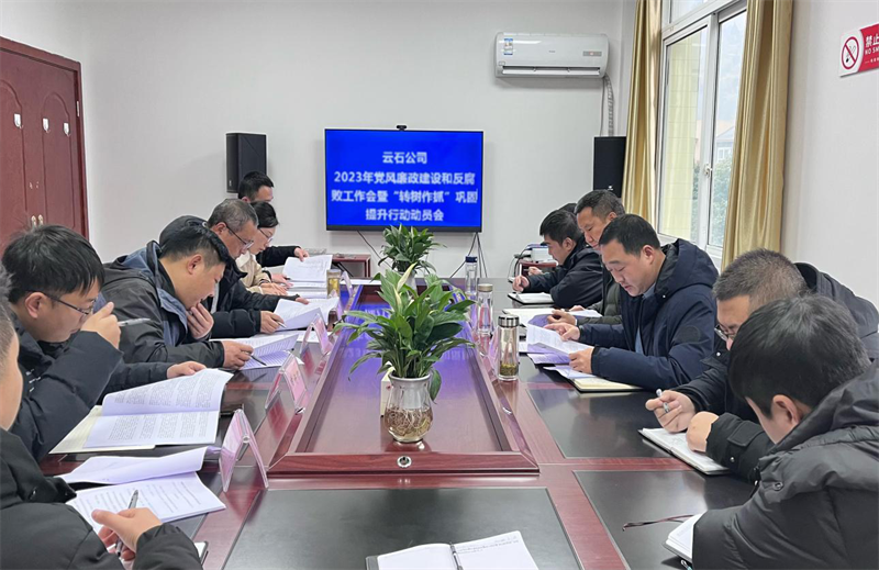 2月16日云石公司召開2023年黨風(fēng)廉政建設(shè)和反腐敗工作會暨“轉(zhuǎn)作風(fēng)、樹新風(fēng)、作表率、抓落實”鞏固提升行動動員會。會議傳達(dá)學(xué)習(xí)中央、省、市紀(jì)委全會精神和市交建集團2023年黨風(fēng)廉政建設(shè)和反腐敗工作會、“轉(zhuǎn)作風(fēng)、樹新風(fēng)、作表率、抓落實”鞏固提升行動動員會精神,進行鞏固提升行動動員。